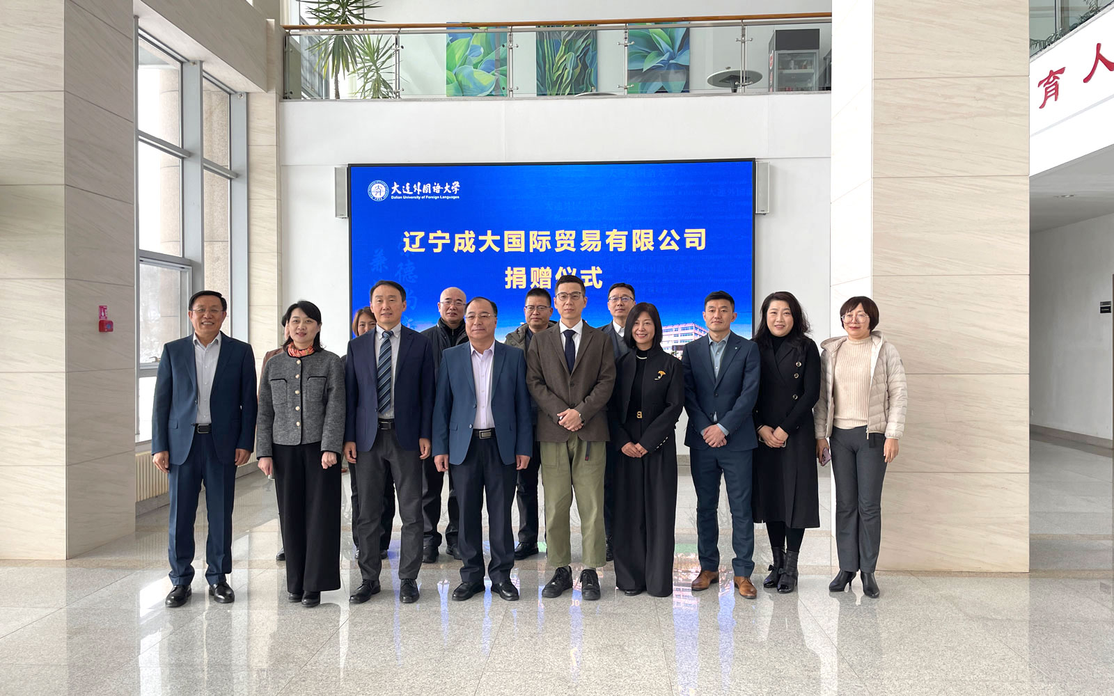 成大國際董事長金春洙、總經(jīng)理高原等一行七人,大外黨委副書記叢明才及相關(guān)部門負責(zé)人出席捐贈儀式。儀式由大外校友工作處副處長卞瑩主持。
